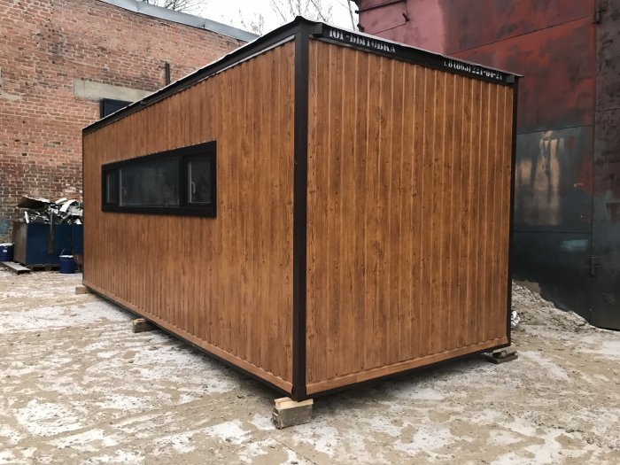 Дом из блок-контейнера, коричневый профнастил