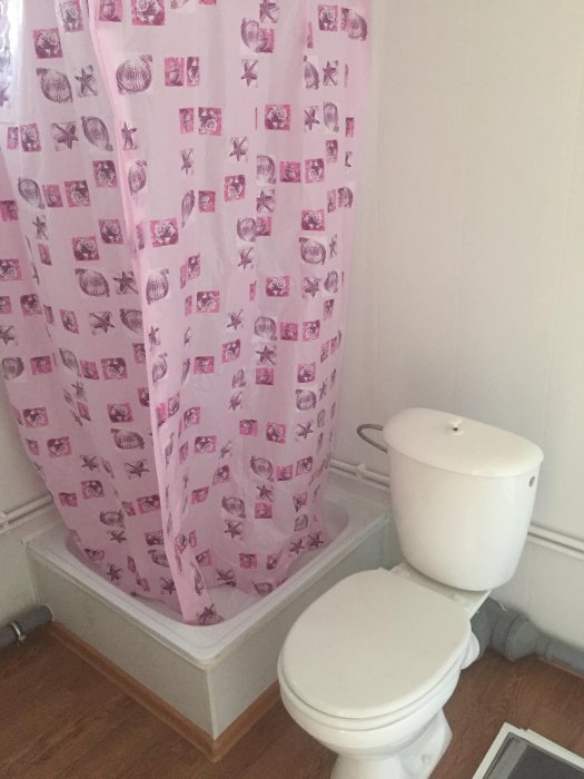 Дачный домик с унитазом, раковиной и душевыми поддонами