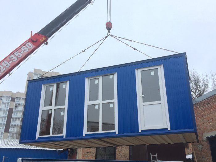 погрузка бытовки 6 м краном-манипулятором